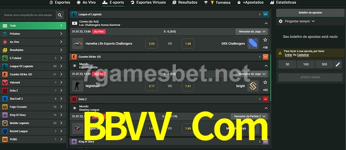 A aposta BBVV Com oferece aos jogadores a experiência mais conveniente de apostas em eSports!